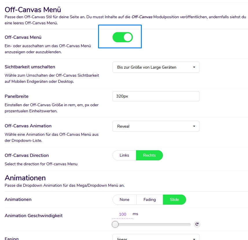 Off Canvas-Menü